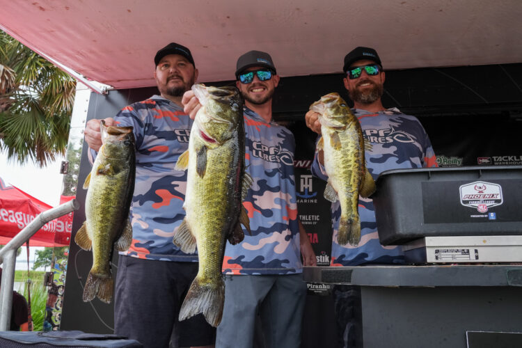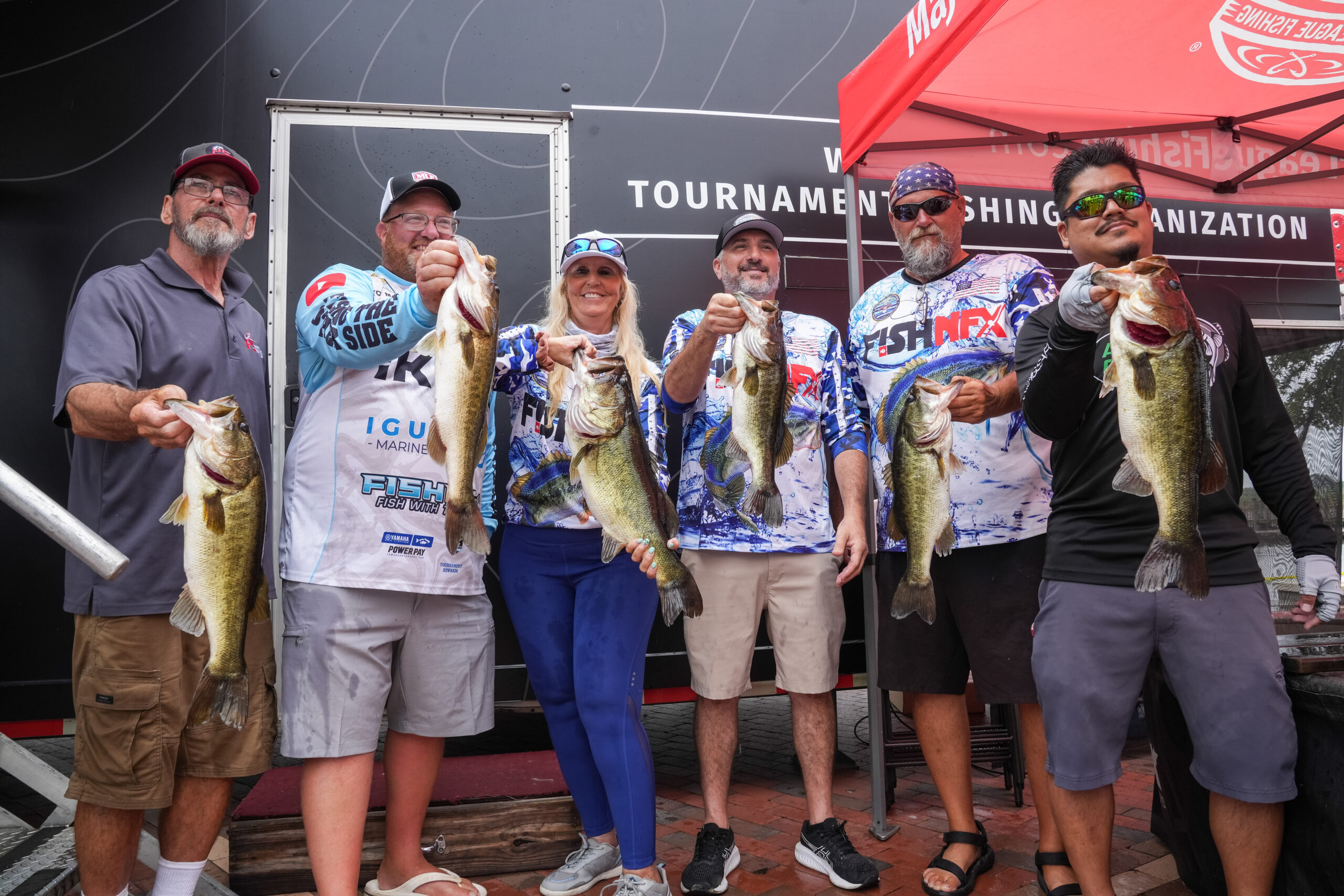 Each fishing team is paired with a media representative for an action-packed, four-hour bass-fishing “fish out” on Lake Toho.