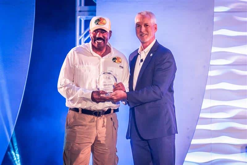 Orlando, FL – July 16, 2025 – Today, the American Sportfishing Association honored actor and philanthropist, Steve Harvey, with the inaugural ASA Impact Award in recognition of his efforts to bring new folks to the sport of fishing. The award was presented during the State of the Industry Breakfast at the International Convention of Allied Sportfishing Trades (ICAST) in Orlando, FL.